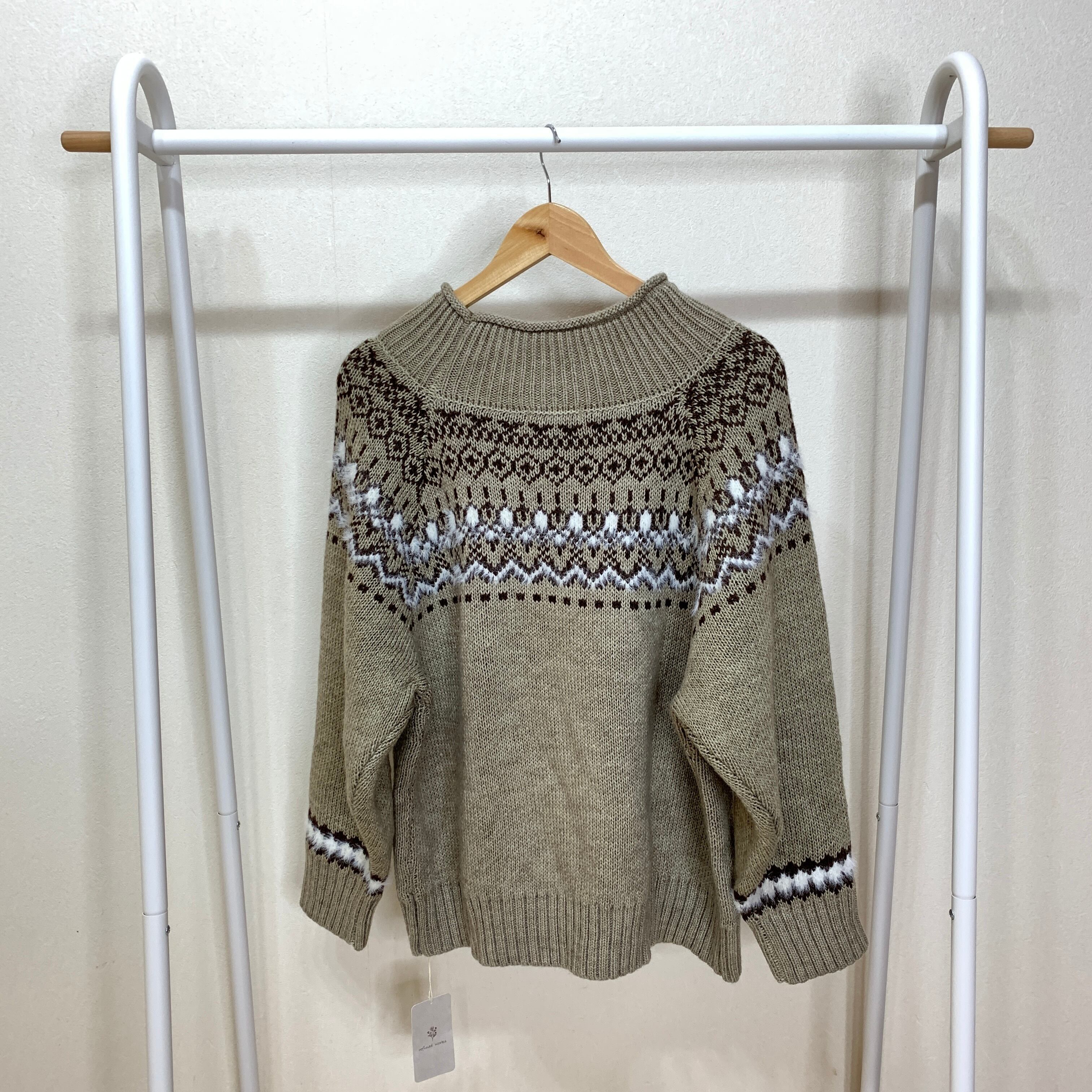 ノルディック柄ハイネックニット ウール混 フェアアイルパターン ハイネックニット ベージュ Fサイズ 暖かい レディース