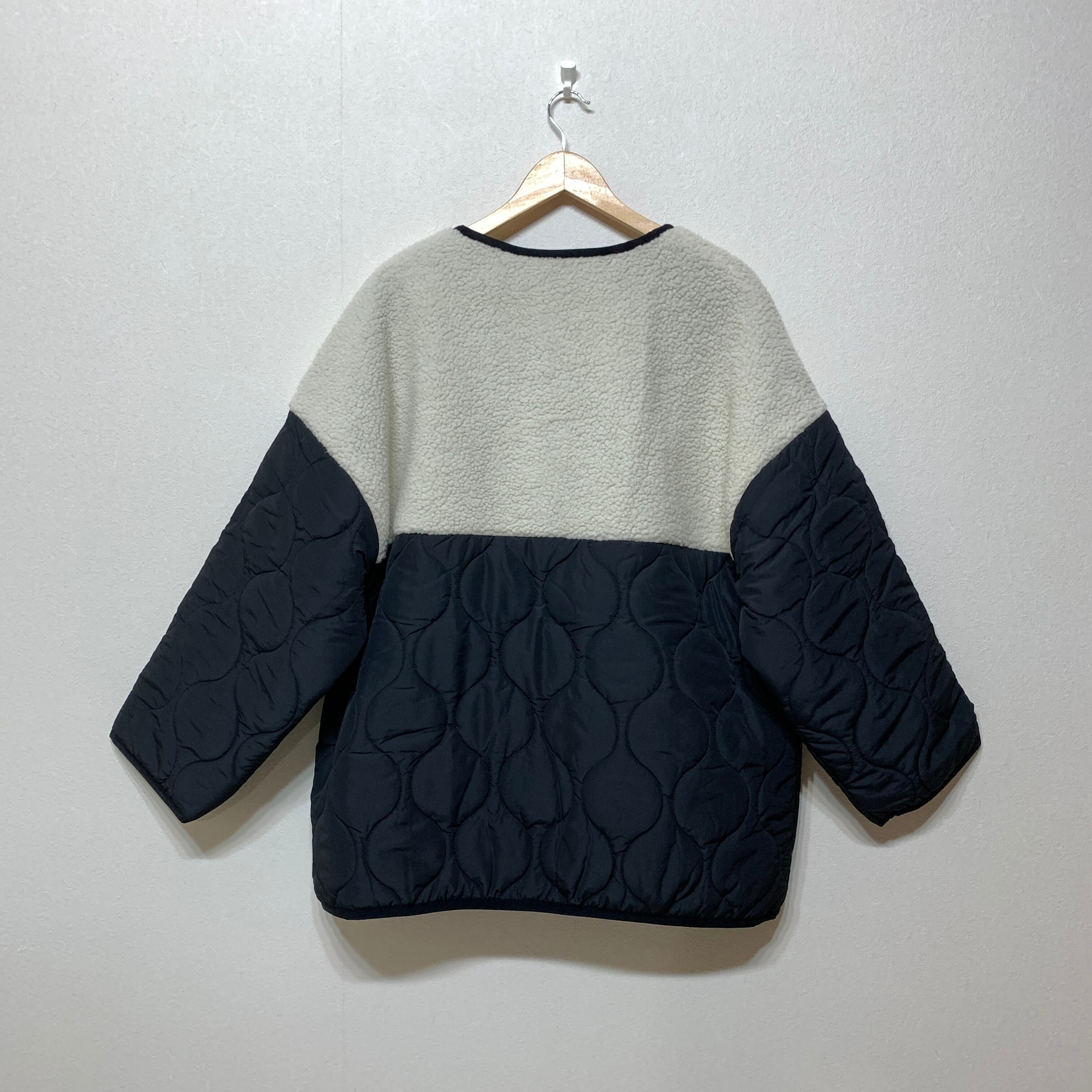 ボア×キルティングブルゾン キルティング ノーカラー オーバーシルエット レディース